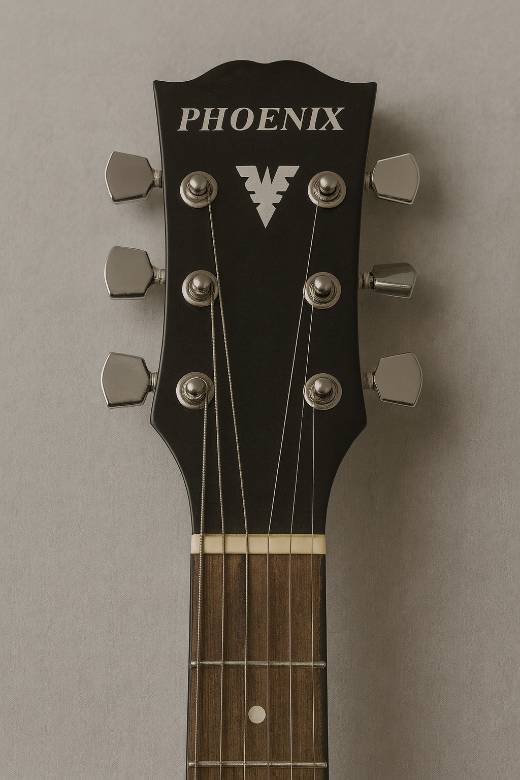 Braço: Escala escura (parece rosewood ou similar), com marcações em bolinha.